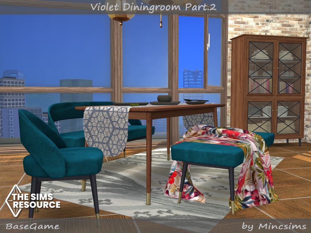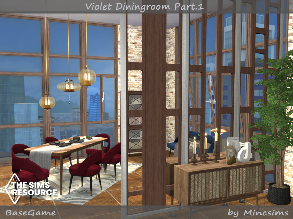 I wanted to make a dining furniture set in a mid-century modern style. Found in TSR Category 'Sims 4 Dining Room Sets'